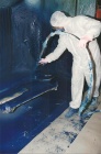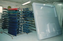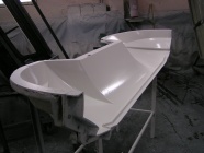 Aufspritzen von Gelcoat Austrocknen des Gelcoats auf der Form.